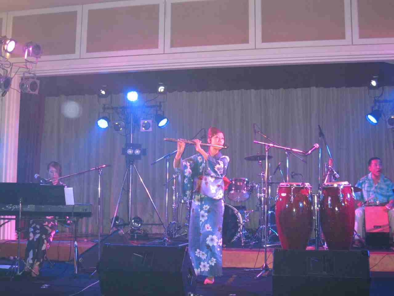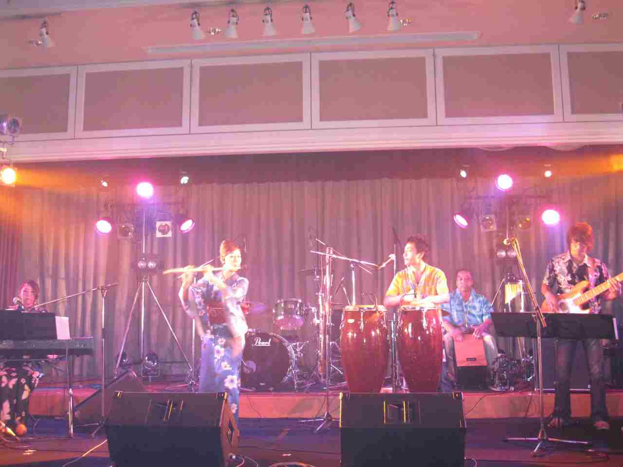 ってな訳でわたしとりっちゃんは浴衣で男子群はアロハでLIVEです